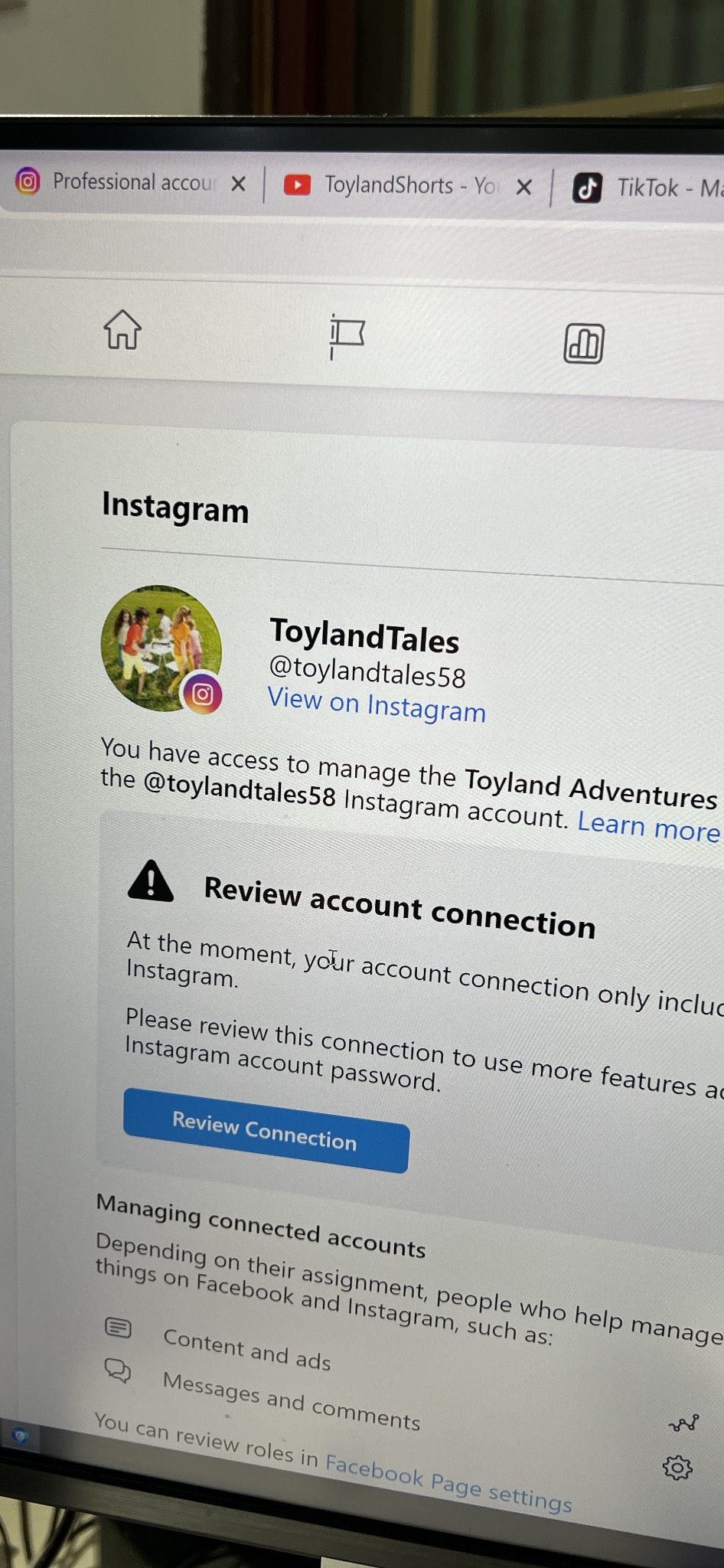 * There's an error in the link between the Fanpage & Instagram.