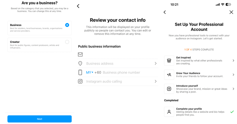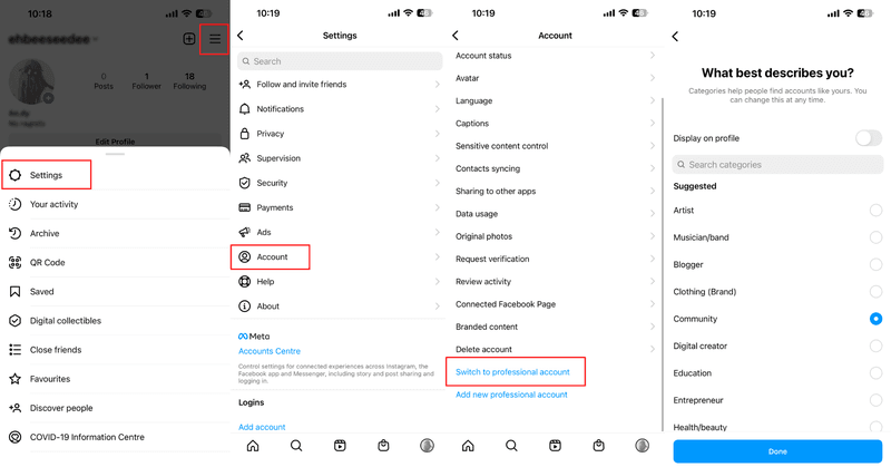 #### <mark style="background-color:yellow;">**a. Switching to a professional account on the Instagram app**</mark>